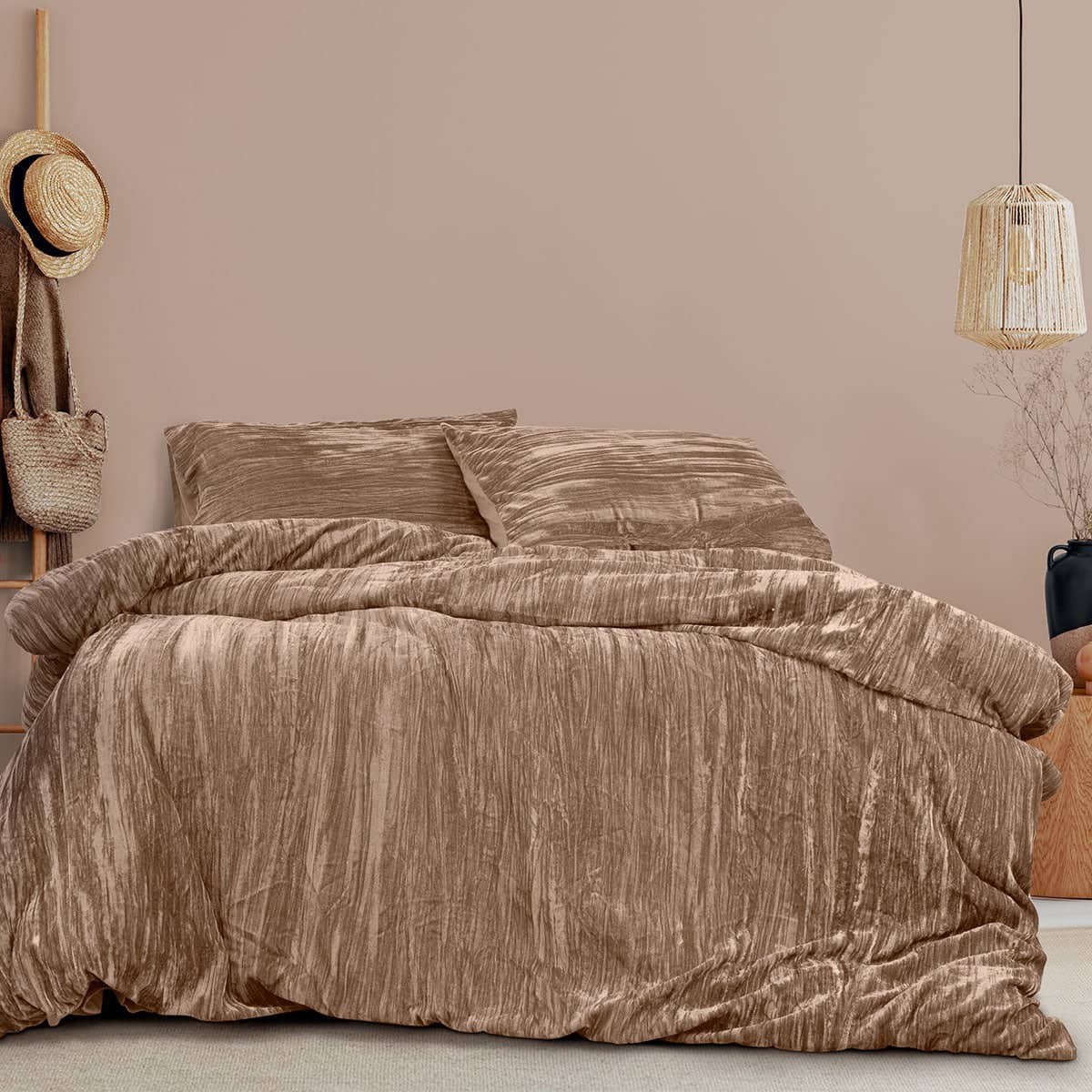 Opulence and elegance in soft champagne tones is our Vivienne Champagne Crushed Velvet Quilt Cover Set by Ardor. This textural silky design will elevate your bedroom style this season. Elevate your sleeping sanctuary with this stunning addition, blending timeless elegance with modern flair.
