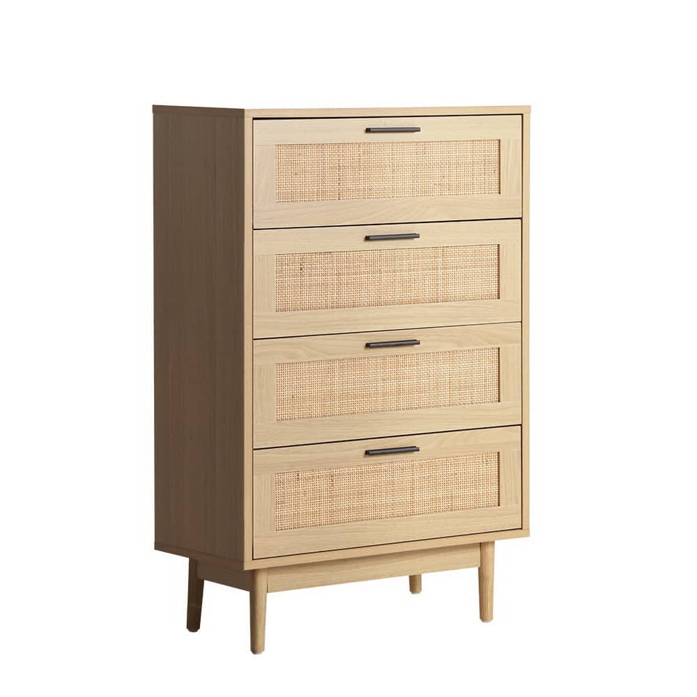Artiss 4 Chest of Drawers Rattan Tallboy Cabinet Bedroom Clothes Storage Wood