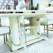 Artiss Bar Table Dining Desk High Kitchen Shelf Metal Legs Cafe Pub White