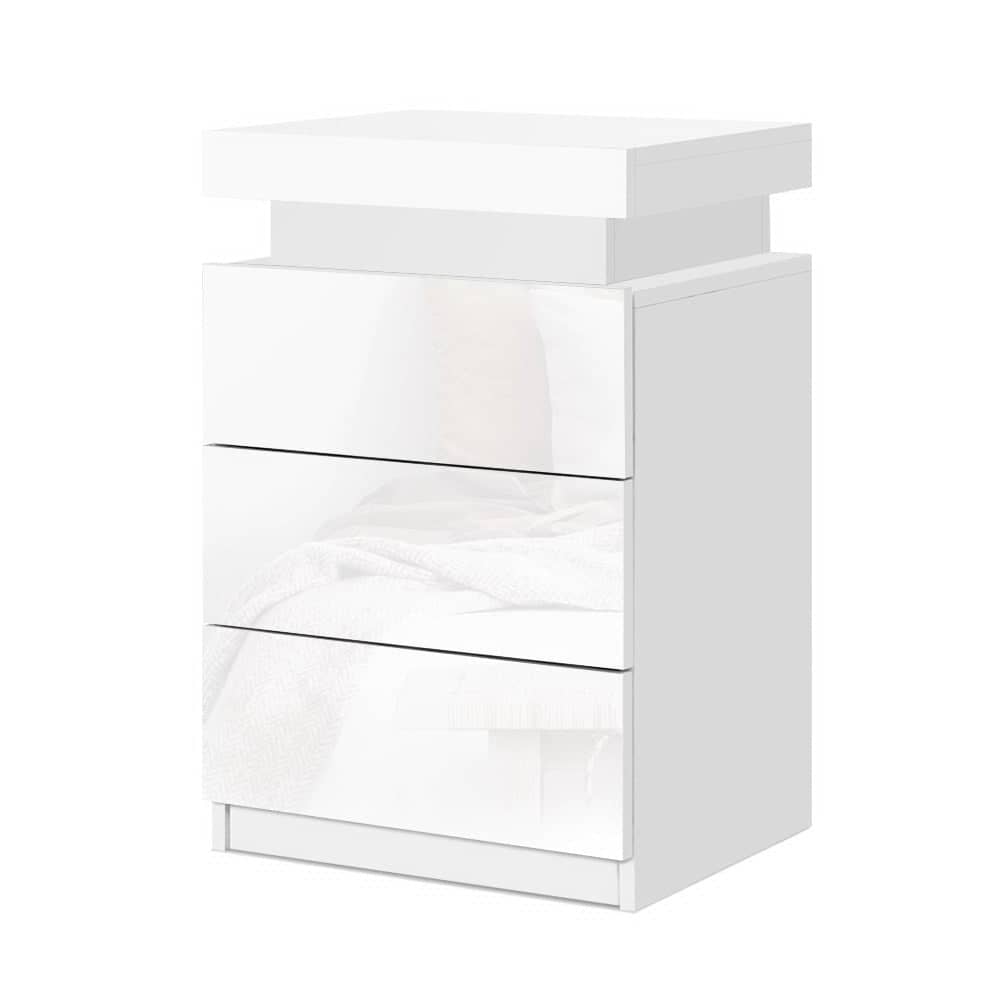 Artiss Bedside Tables Side Table 3 Drawers RGB LED High Gloss Nightstand White
