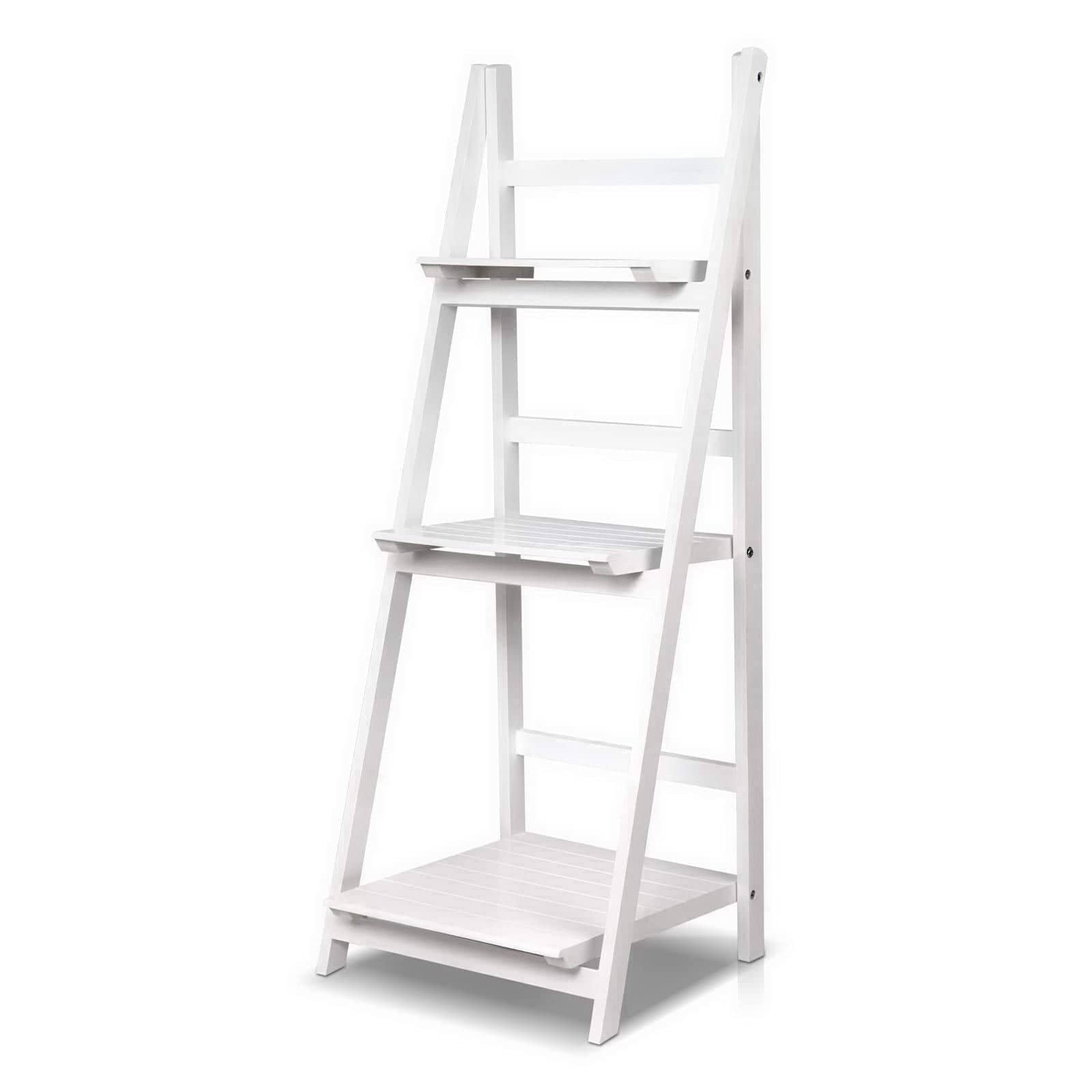 Artiss Display Shelf 3 Tier Wooden Ladder Stand Storage Book Shelves Rack White