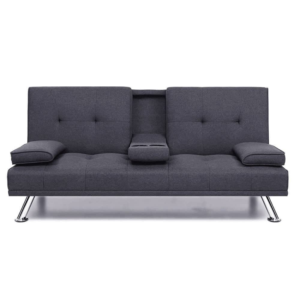 Artiss Linen Fabric 3 Seater Sofa Bed Recliner Lounge Couch Cup Holder Futon Dark Grey