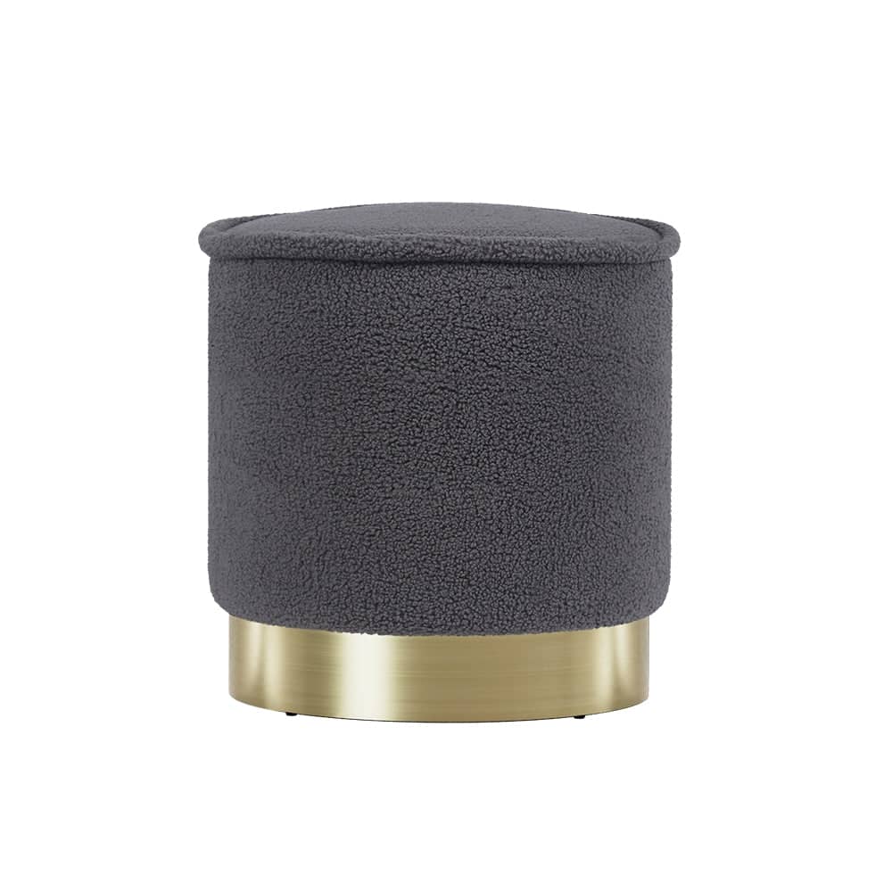 Artiss Ottoman Round Foot Stool Teddy Fabric Foot Rest Padded Seat Charcoal
