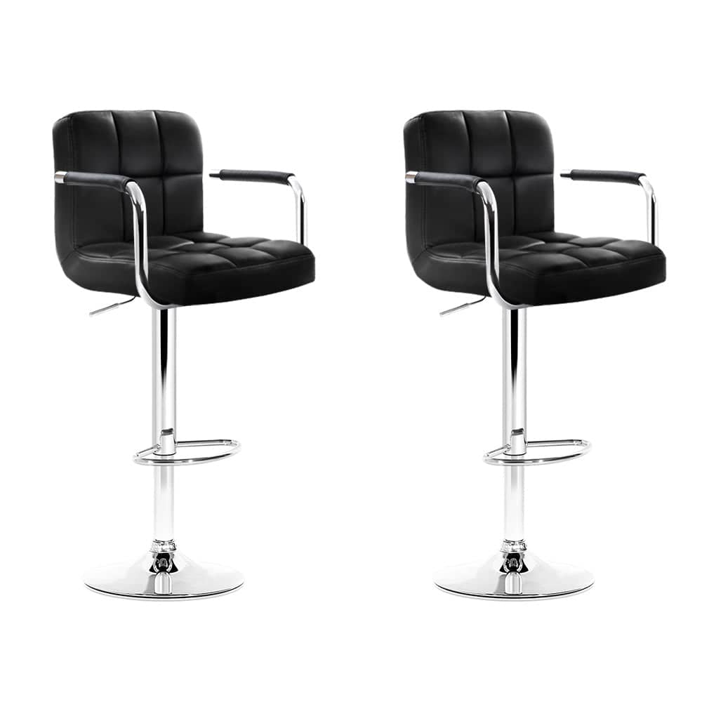 Artiss Set of 2 Bar Stools Gas lift Swivel Armrests - Steel and Black