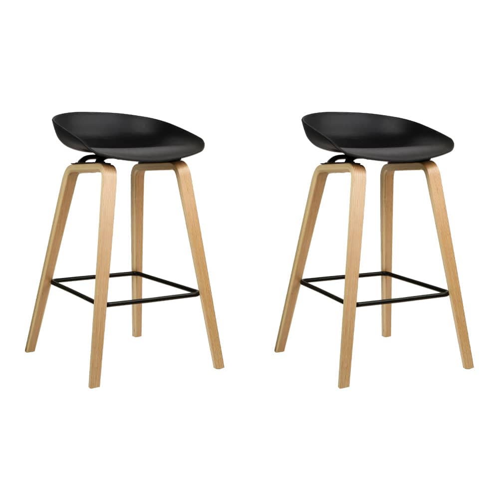 Artiss Set of 2 Wooden Square Footrest Bar Stools - Black