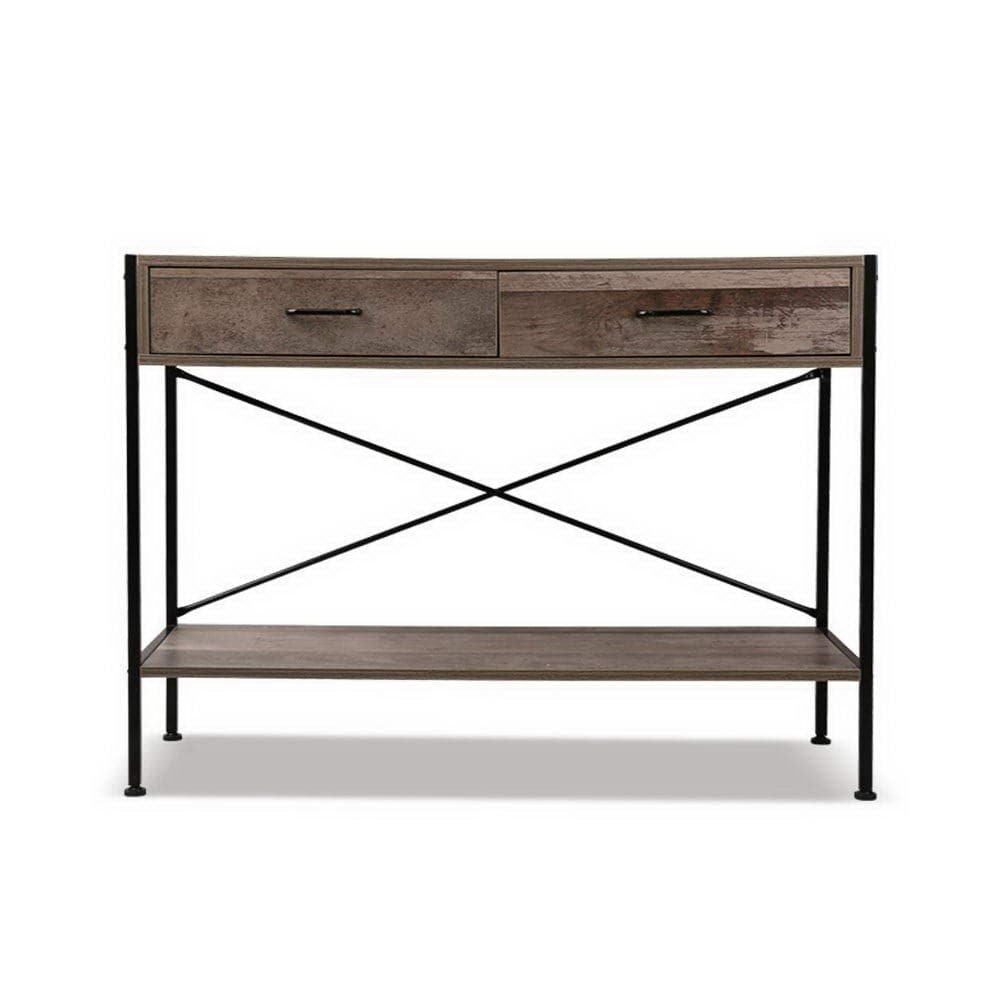 Crafted from eco-friendly15mm thick particle board and black-coated metal, this eclectic Console Table is well proportioned and durable in every aspect. It is also designed to stand well through the test of time with its criss-cross brace support and heavy-duty finishing. In terms of convenience, two spacious drawers let you store home essentials that are always easy to find. Not least, a bottom shelf also allows you to display collectibles, memorabilia or anything of your fancy for a pleasant entrance.