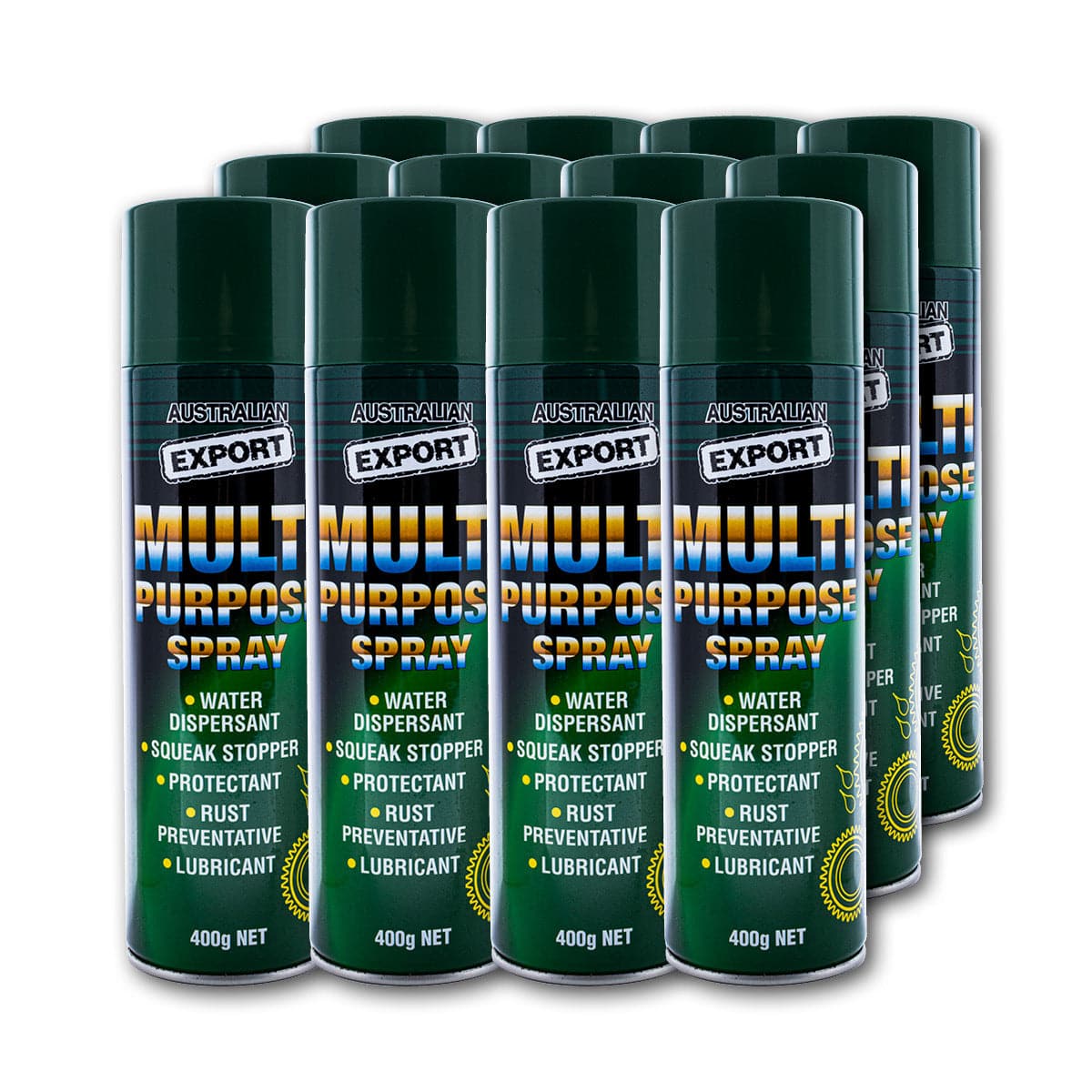 AUSTRALIAN EXPORT multi-purpose (Water Dispersant) Spray that is formulated to lubricate and protect. Containing Propellant Hydrocarbon and Aluminium Pressurised‚ this product is suitable for use on wet engine motors, rusty iron, squeaky hinges, motor parts and any home imperfections. Proudly Australian Made and an effective lubricant, squeak stopper and rust preventative‚ this product can be applied to multiple surfaces‚ that is available in our handy 12 pack.