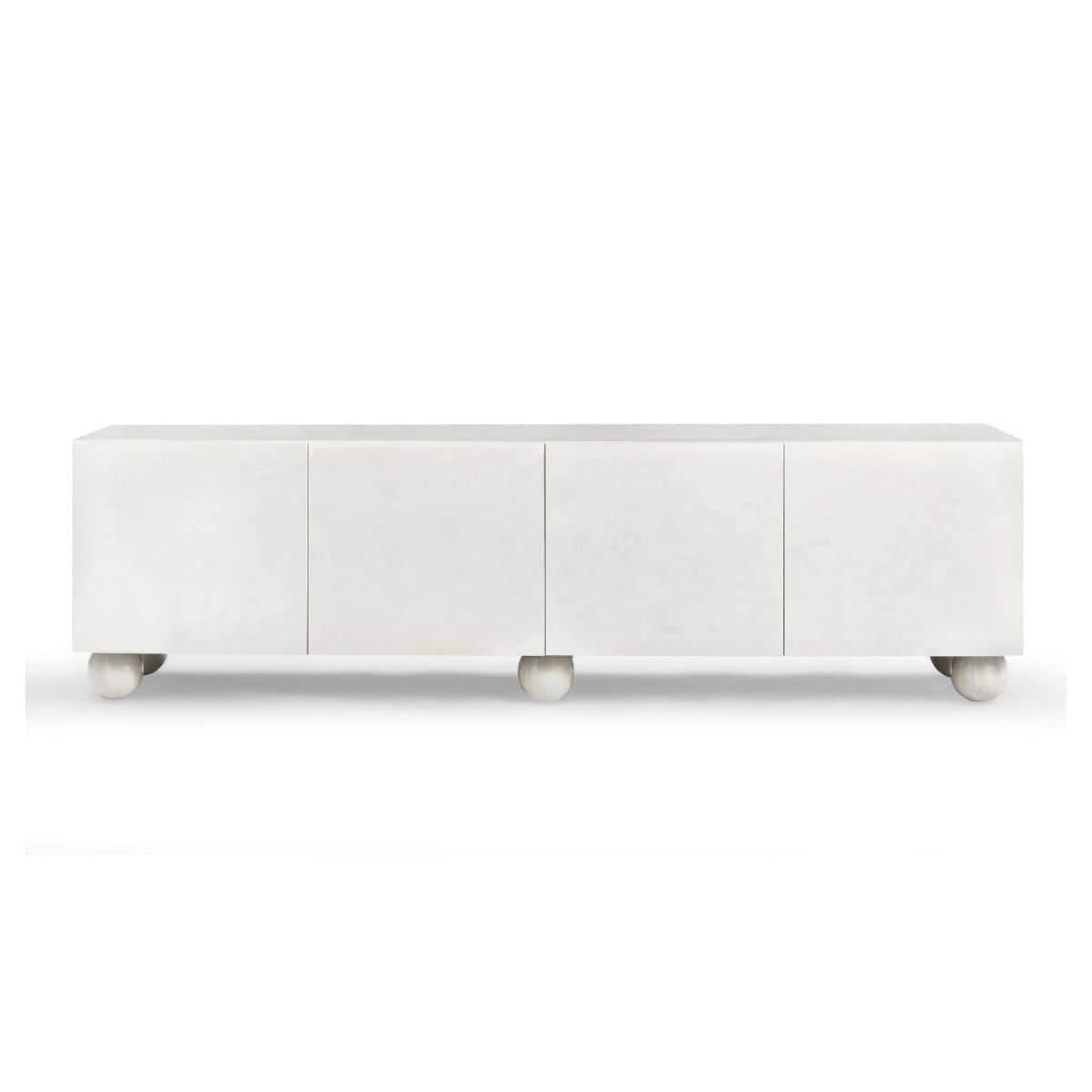 Intriguing Round LegsThe round legs of the Ava White TV Unit add a unique twist to the sleek lines of the body, creating an eye-catching detail that fits with the modern look of this trendy piece.