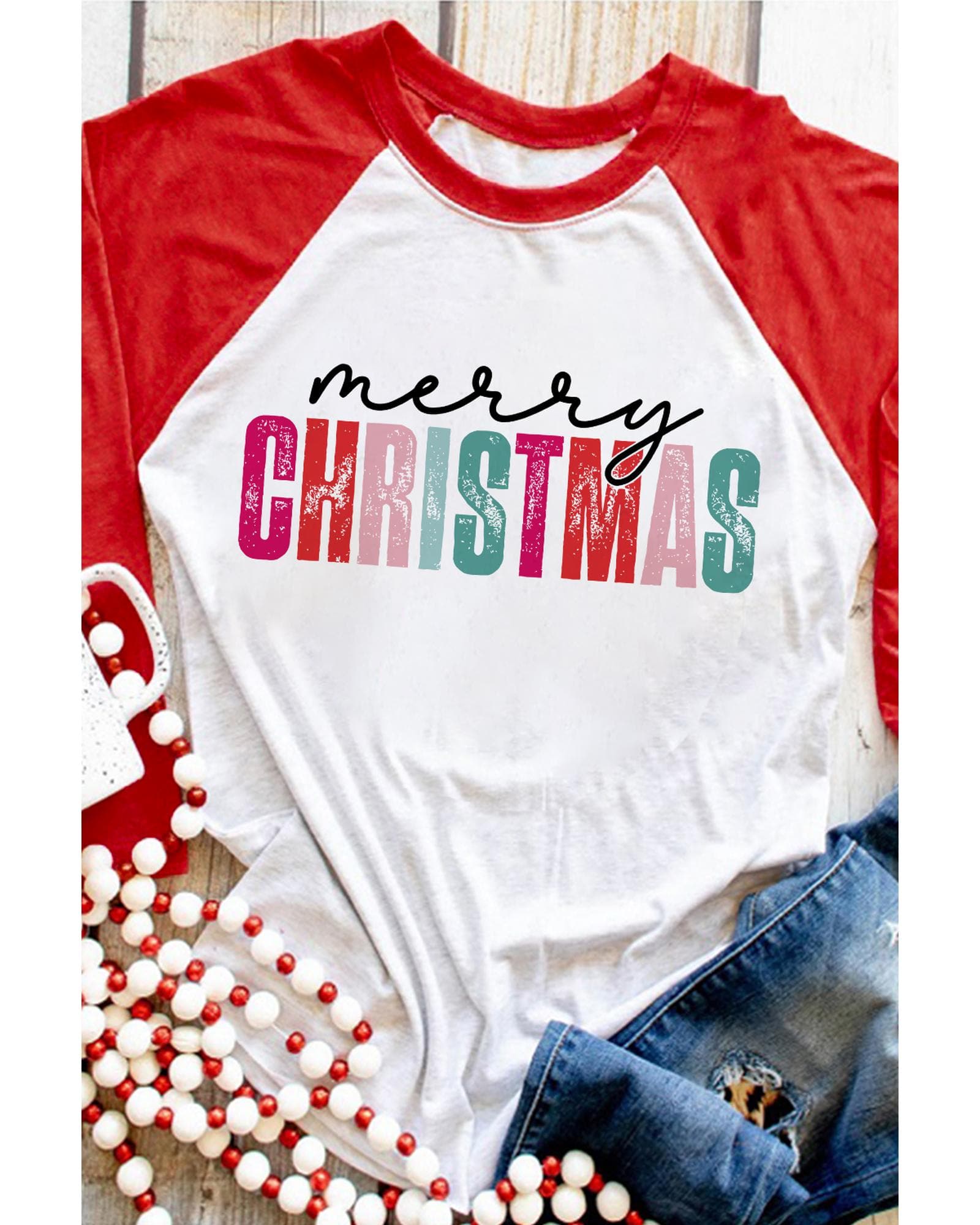 - Stylish and festive Merry CHRISTMAS Color Block Long Sleeve Top