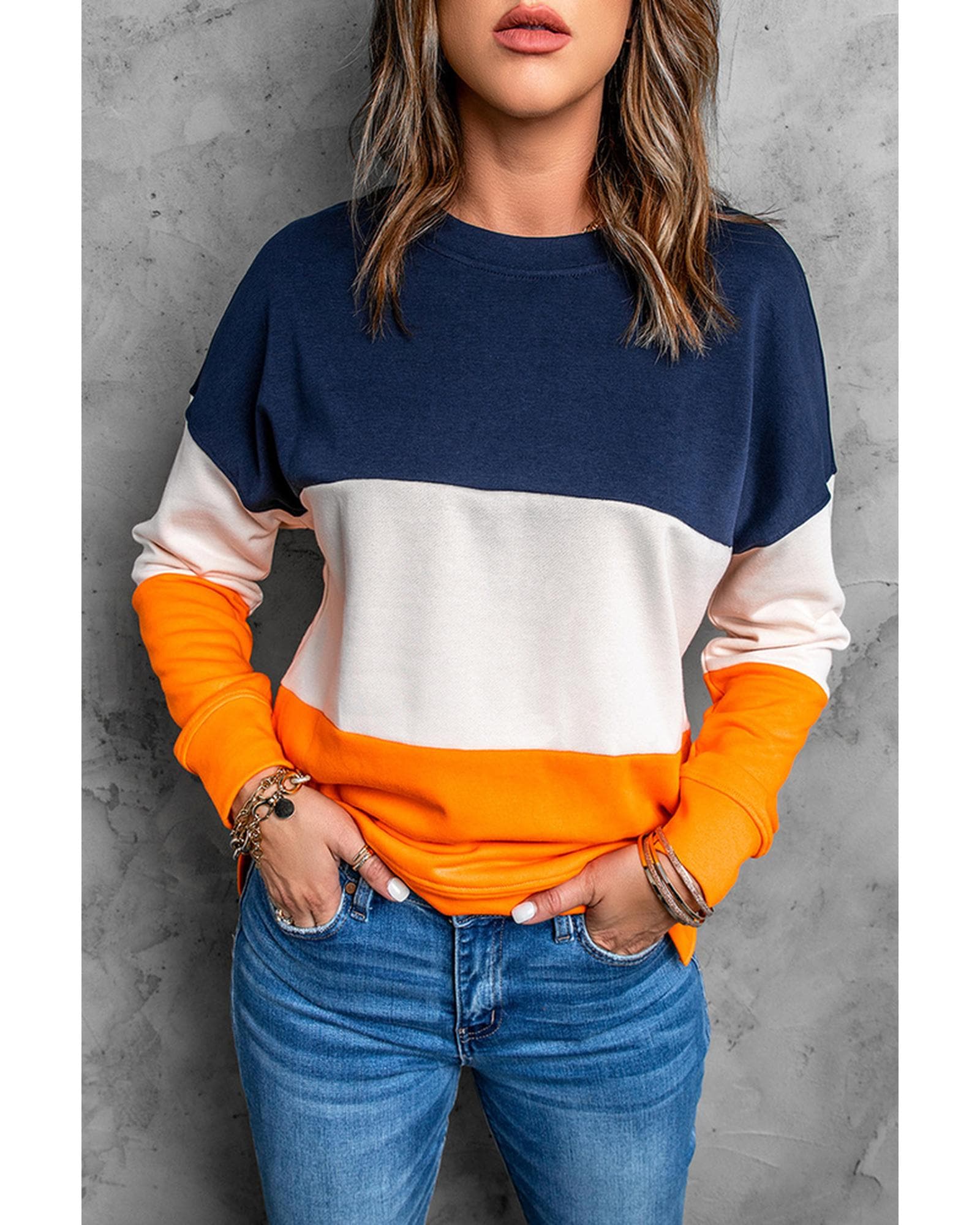 - Colorblock Orange Contrast Stitching Sweatshirt