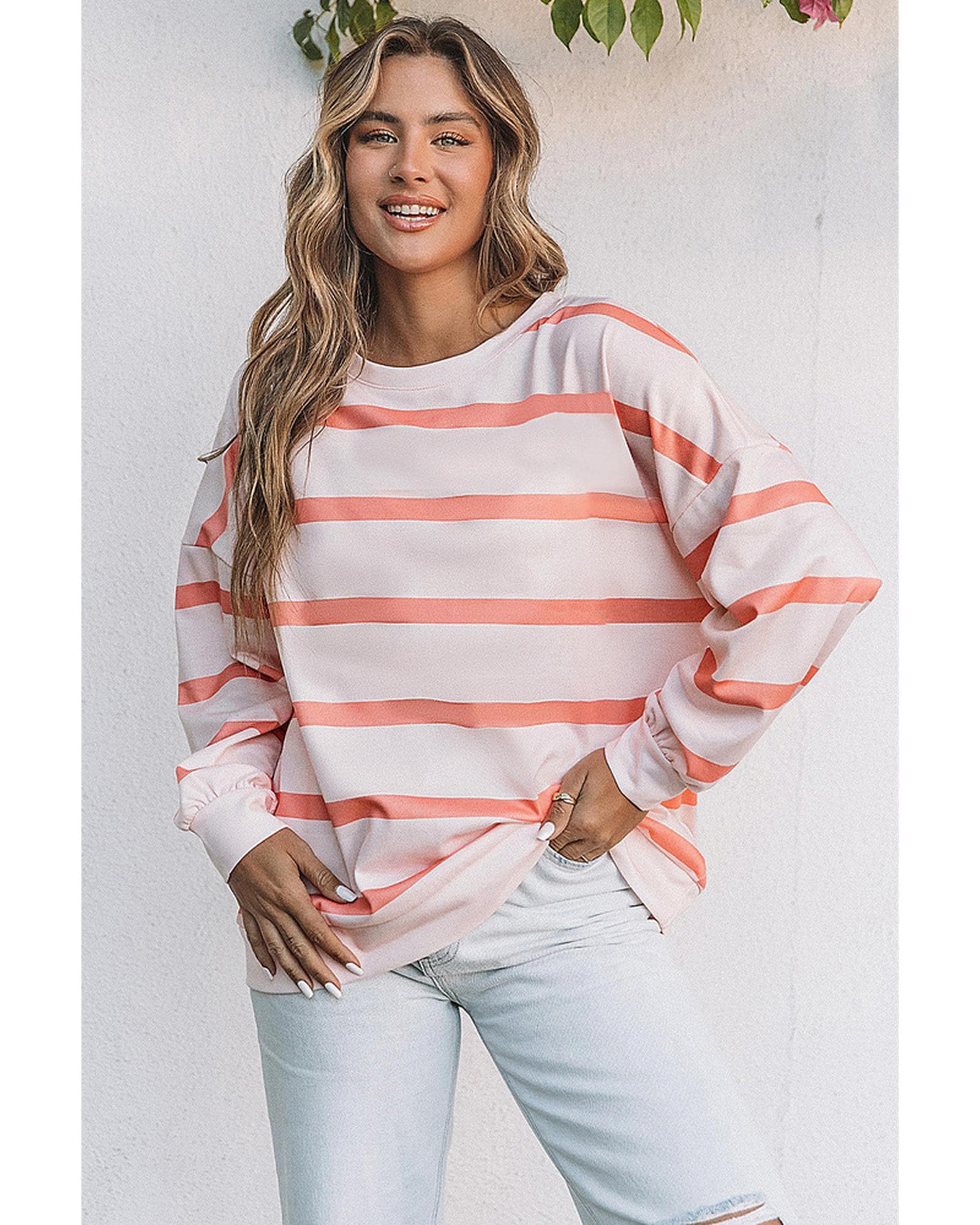 Azura Exchange Drop Shoulder Pullover Sweatshirt with Striped Pattern - M