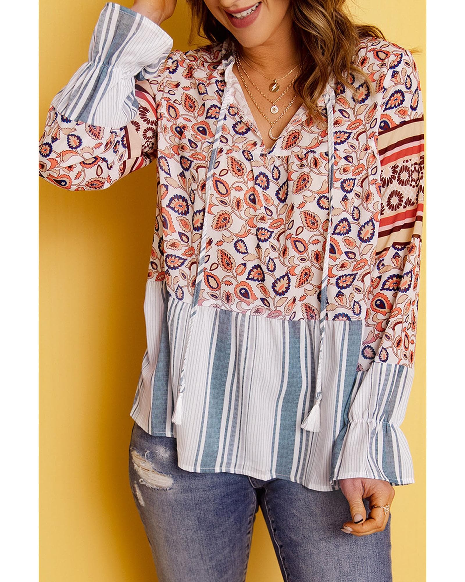 - Multicolor loose fit floral striped blouse