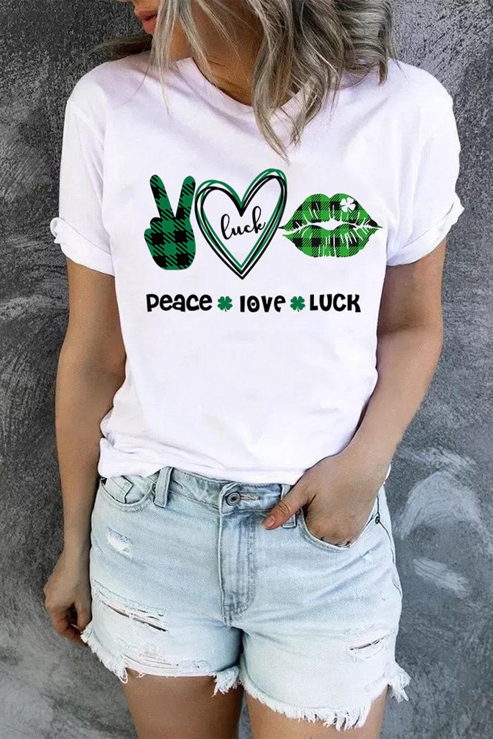 - Stylish and trendy Peach Love Luck Graphic Print Crew Neck T-Shirt