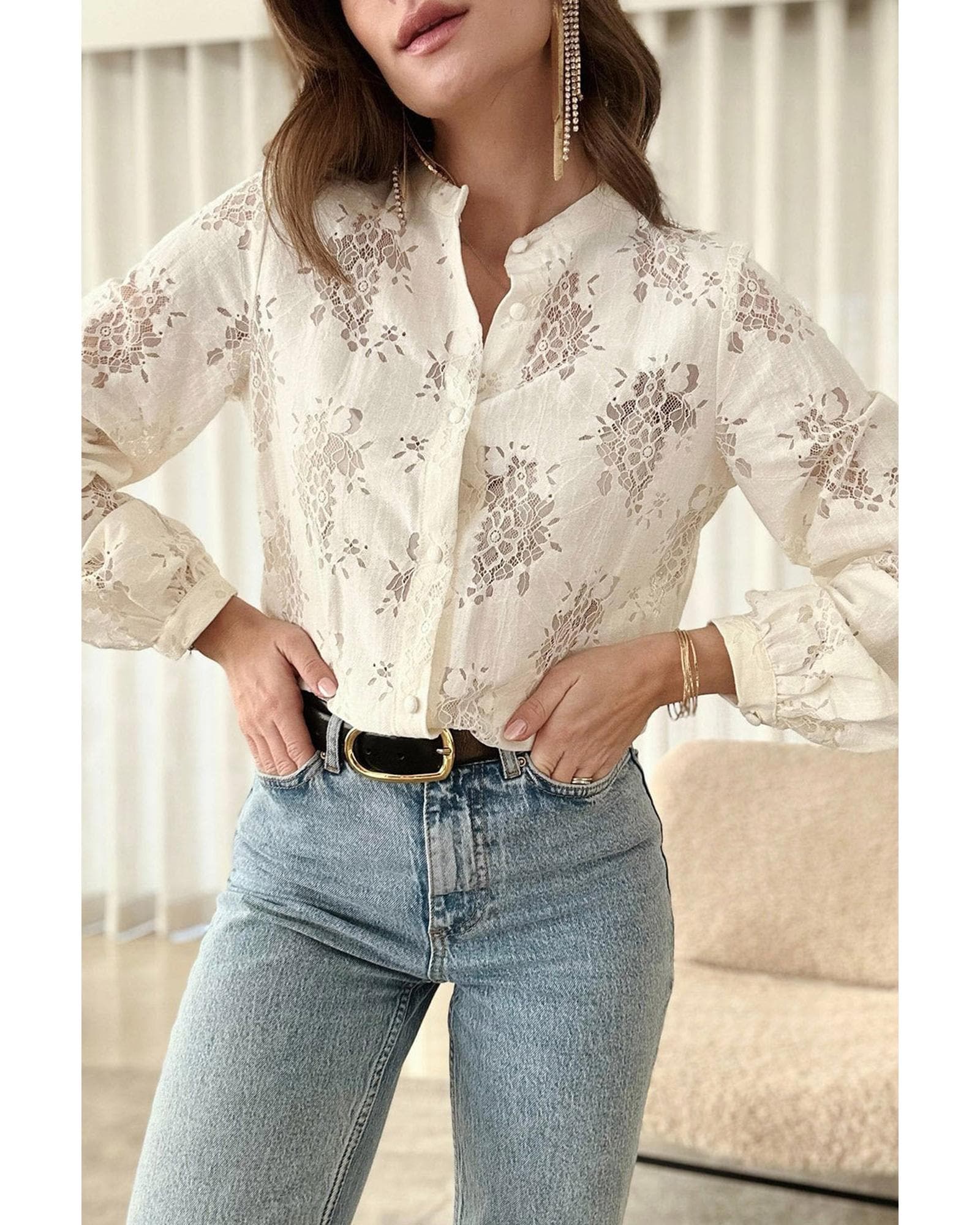 - Stylish and elegant Floral Lace Stand Neck Textured Shirt