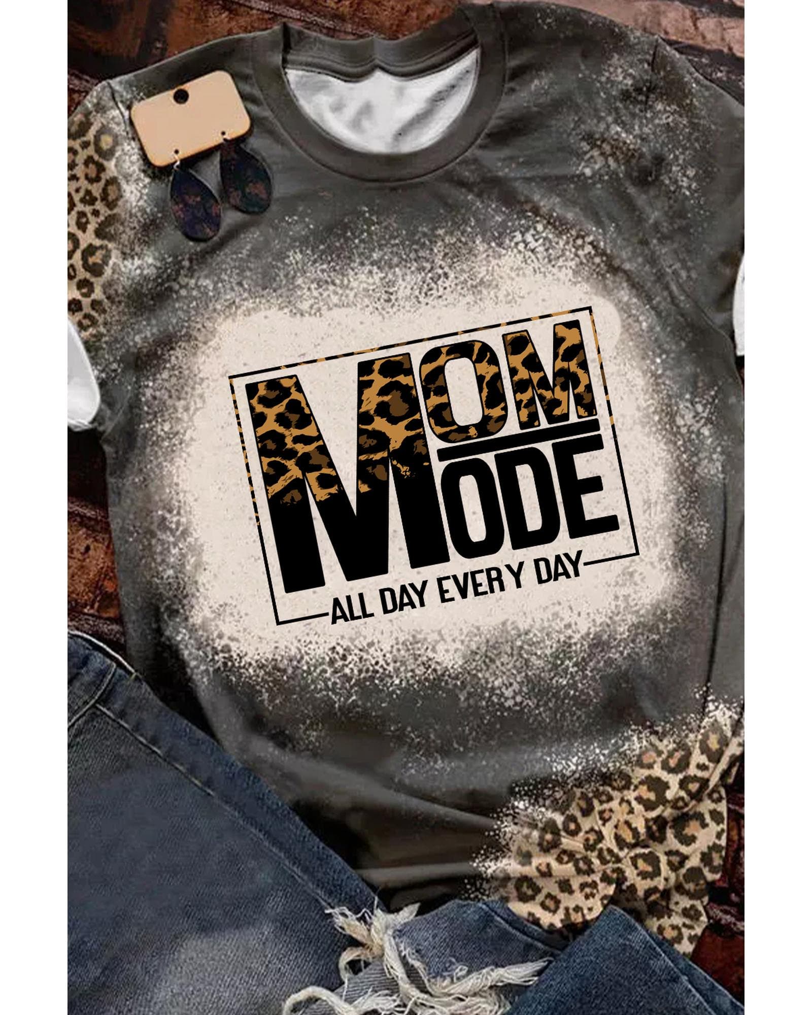 - Stylish MOM MODE Leopard Bleach Print Vintage Graphic Tee