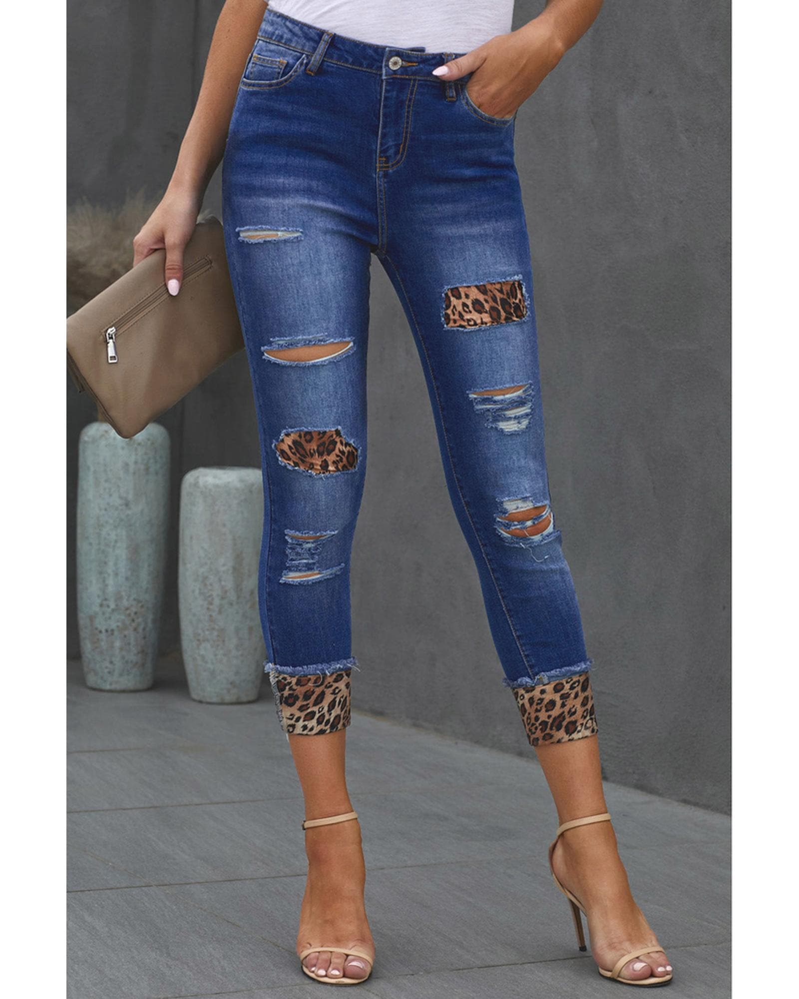 Azura Exchange Leopard Patches Distressed Skinny Jeans - M