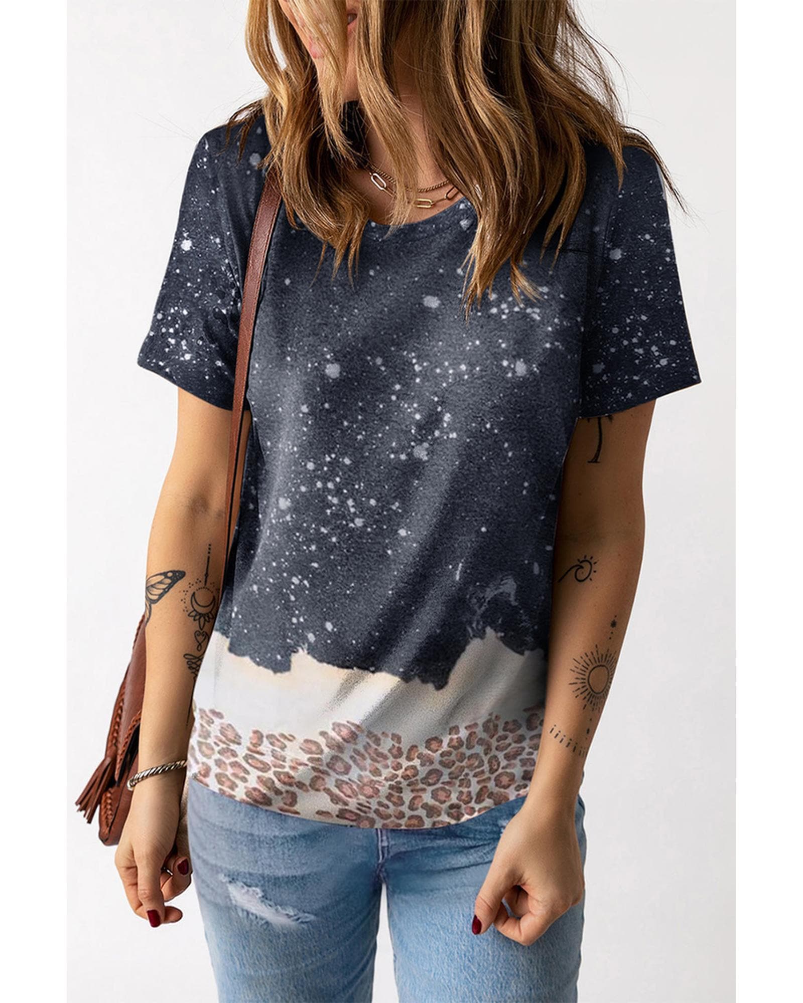 Azura Exchange Leopard Print Detail Bleached Tee - L