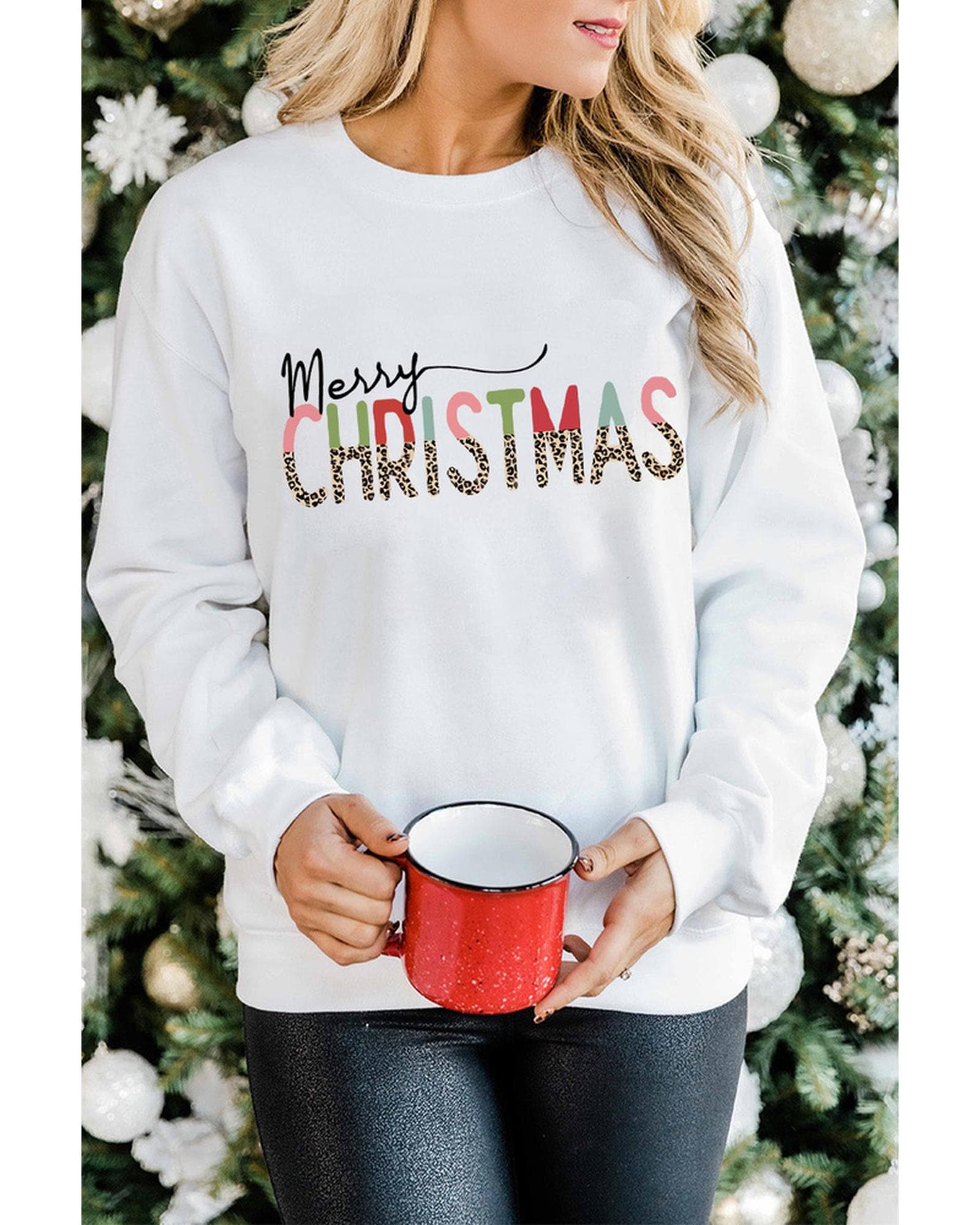 - Stylish and festive Merry Christmas Leopard Print Long Sleeve Sweatshirt