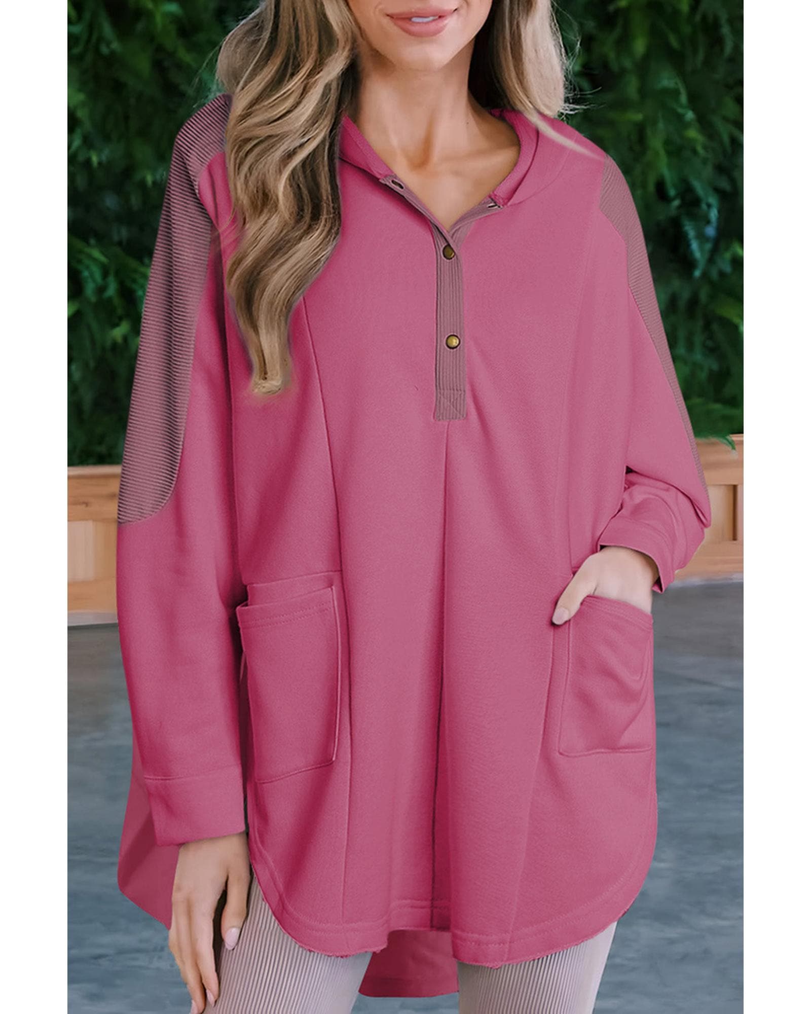 Azura Exchange Oversized Patchwork Henley Hoodie - M