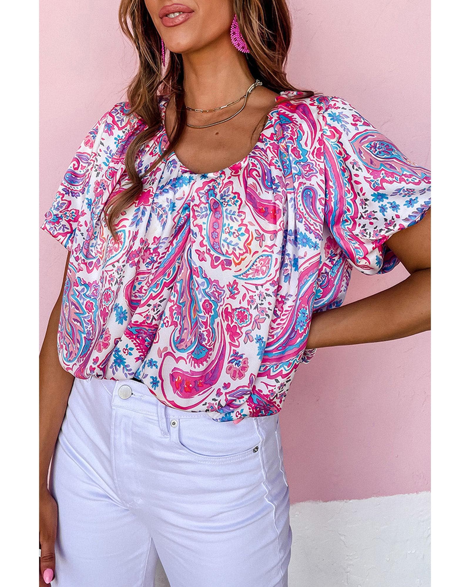 Azura Exchange Paisley Print Puff Sleeve Blouse - M