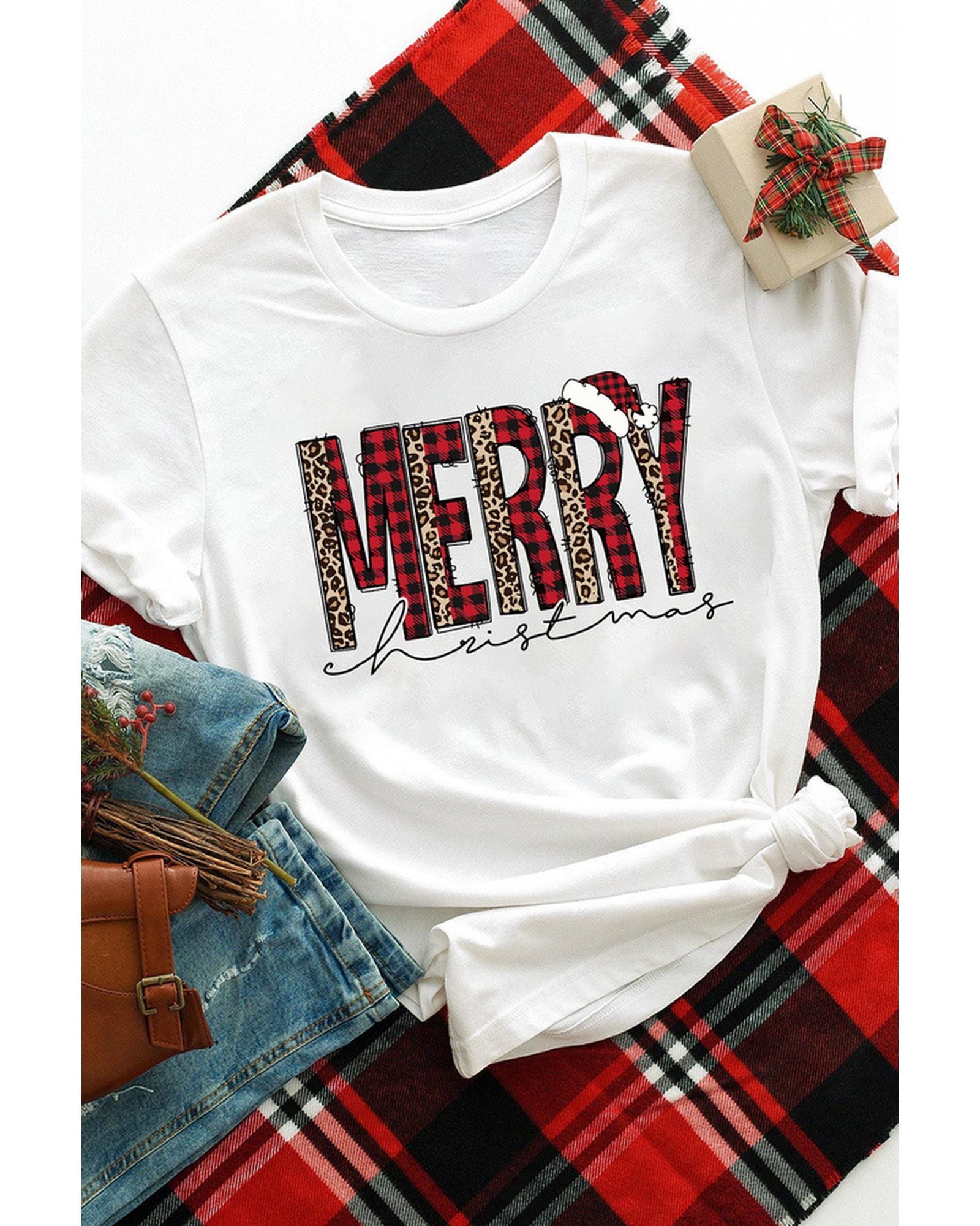 - Stylish and trendy MERRY Plaid Leopard Print Short Sleeve T Shirt