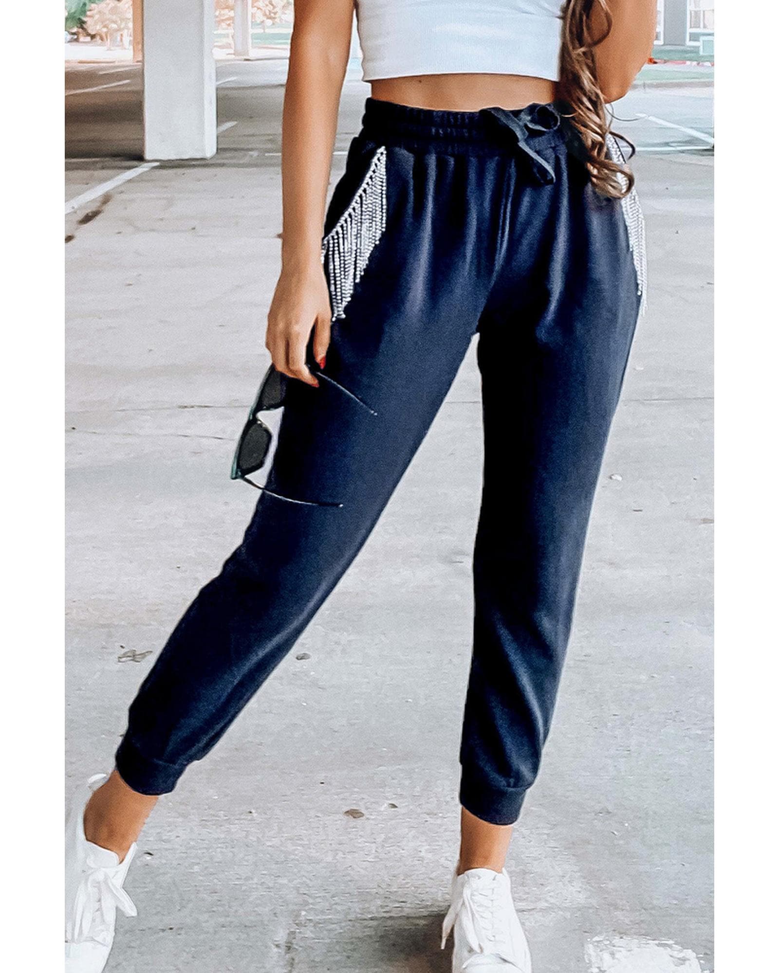 Azura Exchange Rhinestone Trim Drawstring Jogger Pants - M