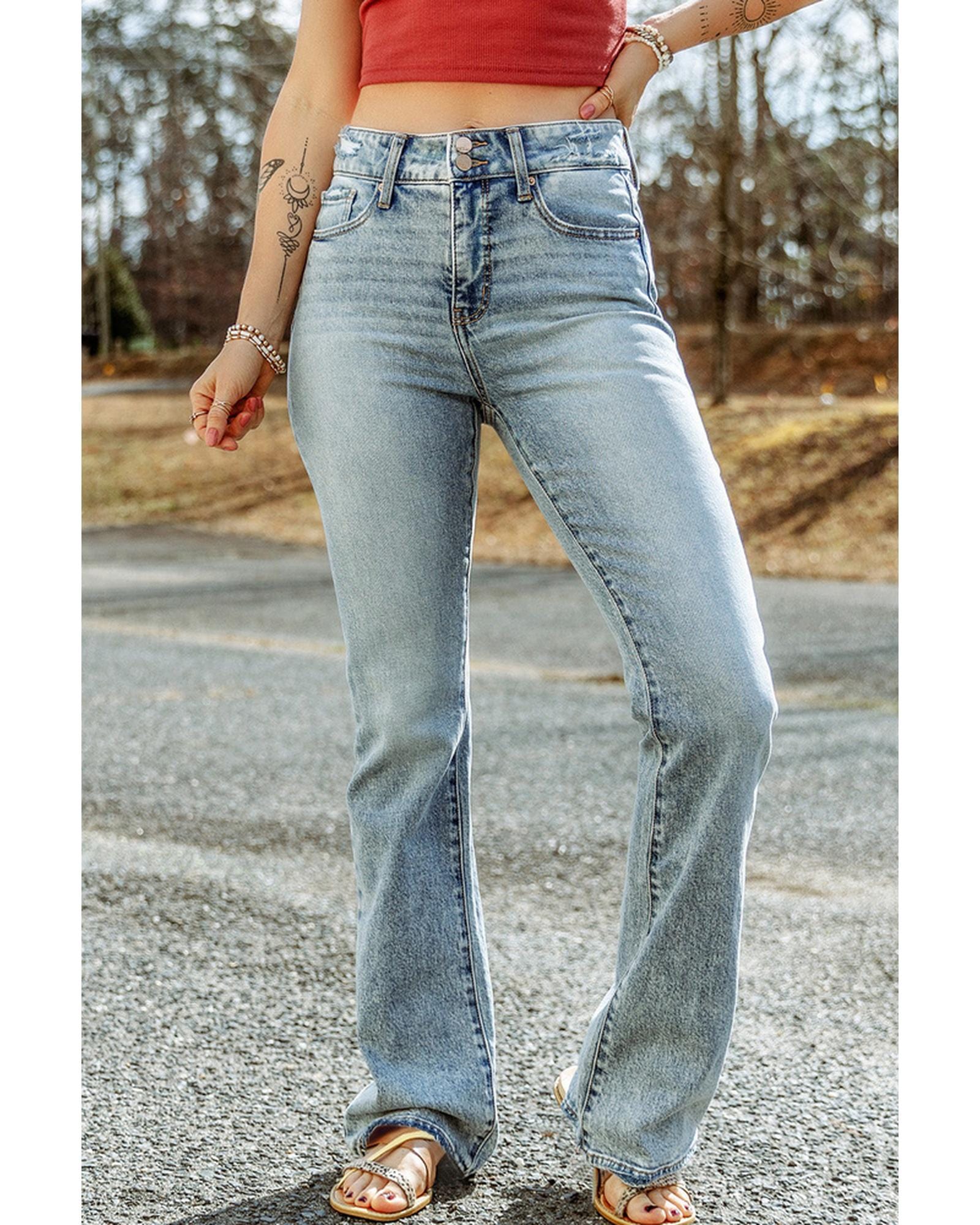 - Stylish Subtle Ripped Detail Flare Bottom Jeans