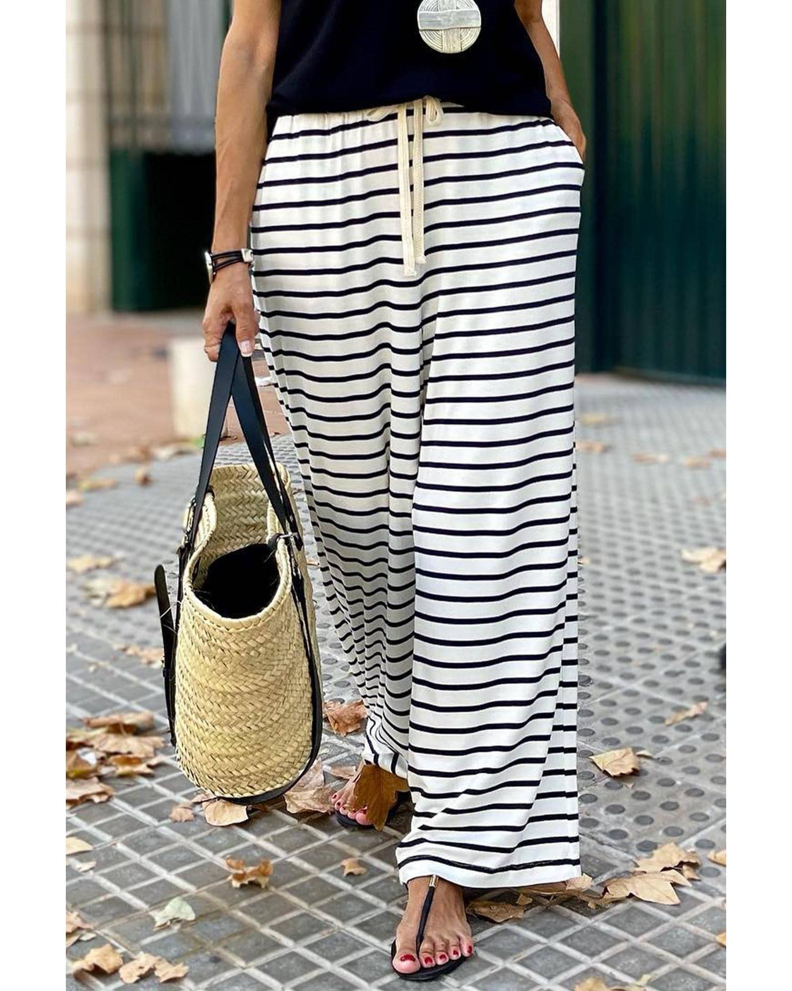 Azura Exchange Striped Wide Leg Pants - L