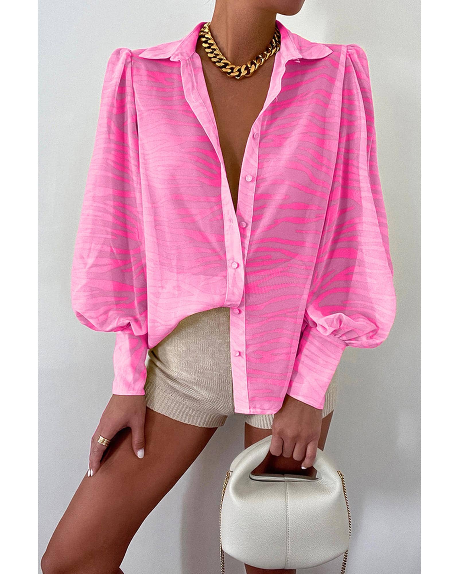 - Stylish and trendy Zebra Stripes Print Lantern Sleeve Shirt