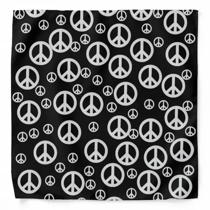 BANDANA Paisley 100% COTTON Head Wrap Durag Bandanna Summer Biker Scarf Mask - Black with White Peace Symbol