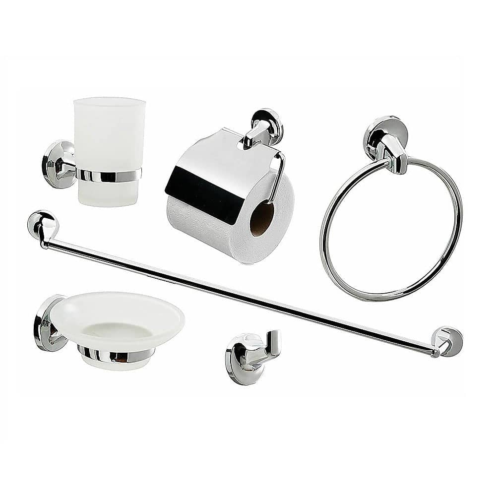 Bathroom Accessories Set 6 Piece Pack Chrome Wall Mounted Easy Fittings