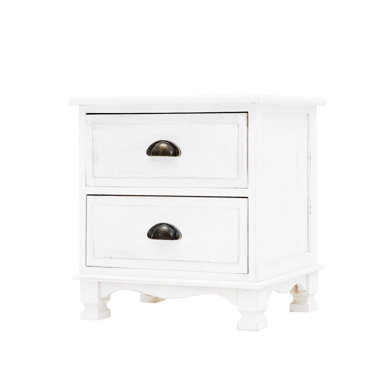 La Bella Bedside Table 2 Drawer Vintage Side Table Storage Cabinet Bedroom LYDIA - White