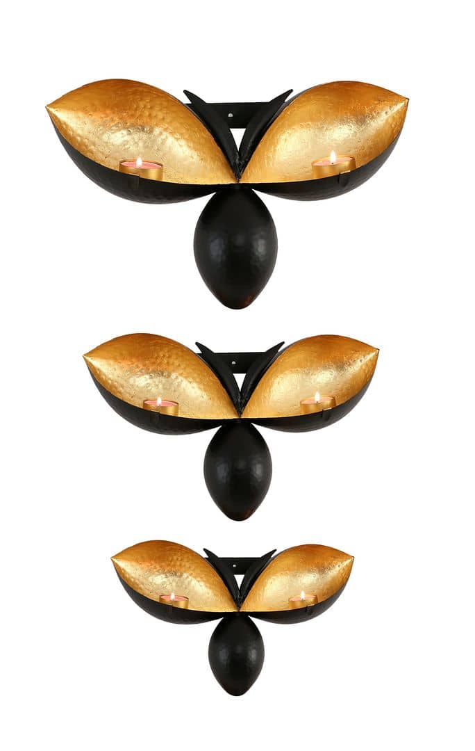 Bee Shape Wall Mounted Black Gold Candle Holders - Set of 3