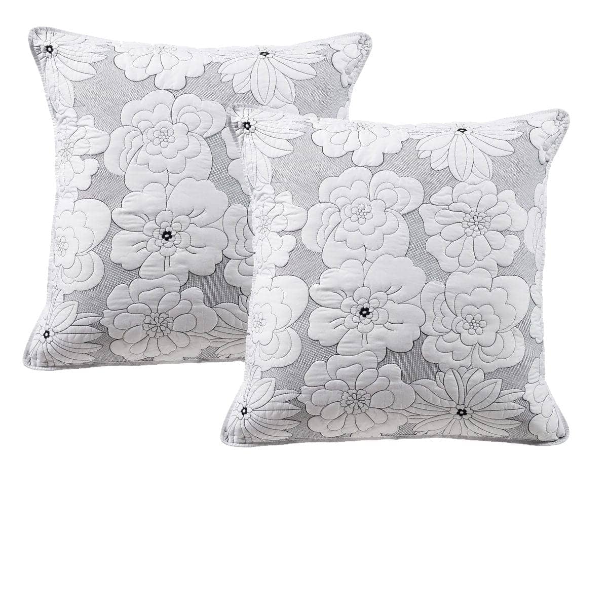 Make a statement in your bedroom with this striking design. Pair of Leona White European Pillowcases by Bianca features a floral pattern with black and white contrast stitching.