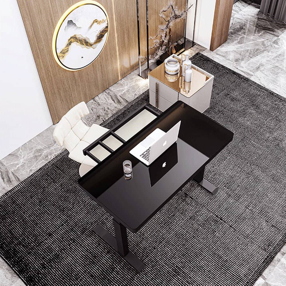 Black Color Electric Standing Desk Electric Height Adjustable Sit Stand Workstation Toughened Glass Top Single Motor Wireless Charger