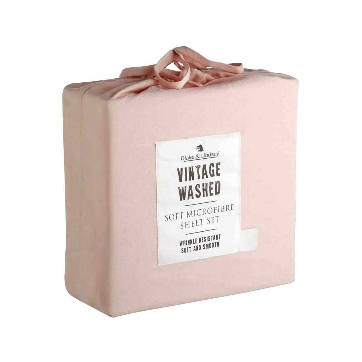 Blake & Lindsay Blush Vintage Washed Microfibre Sheet Set 40cm Wall Queen