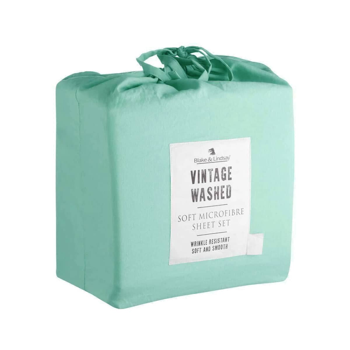 Blake & Lindsay Sea Mist Vintage Washed Microfibre Sheet Set 40cm Wall King Single