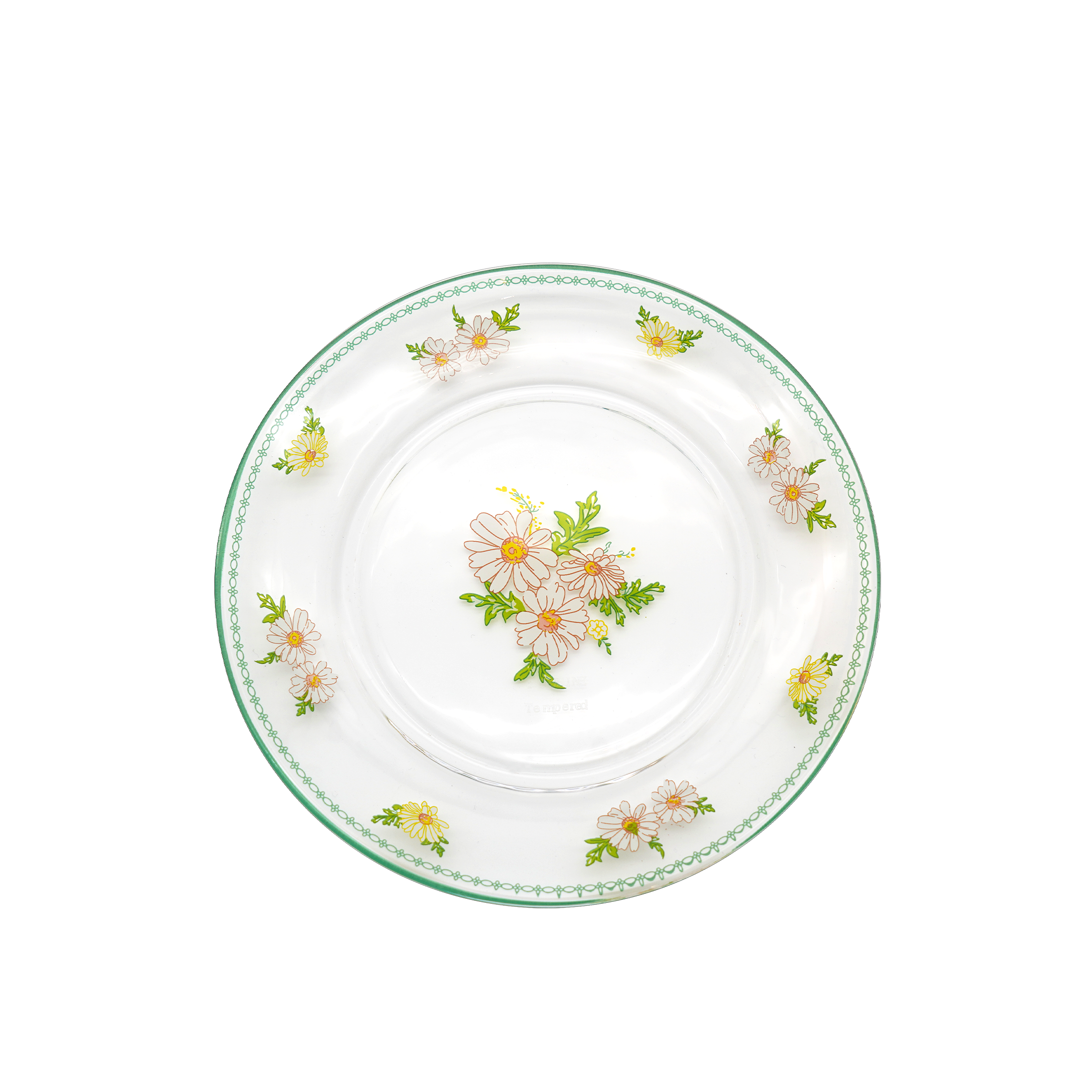 The Bouquet Glass Flat Plate are a vivid reproduction of flower motif. Bright hues alternate with the green of the leaves resulting in a vivid mix that effortlessly harmonizes with any refined table setting, perfect for holidays.