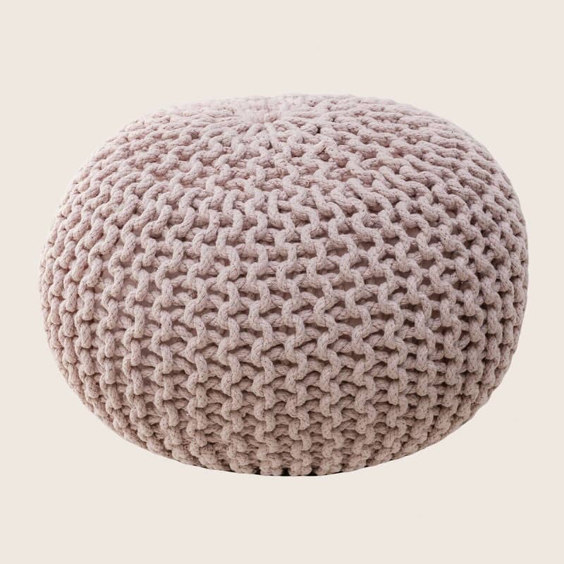 Braided Ottoman Pouffe Footstool Hand Knitted (Blush Pink)