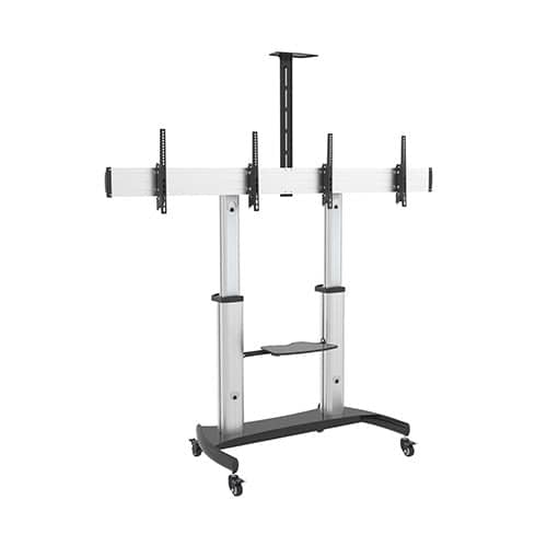 BRATECK Dual Screen Aluminum Height-Adjustable TV Cart with Media Shelf for 37'-60' TVs Up to 50kg VESA 200x200,300x200,300x300,400x300,400x200,