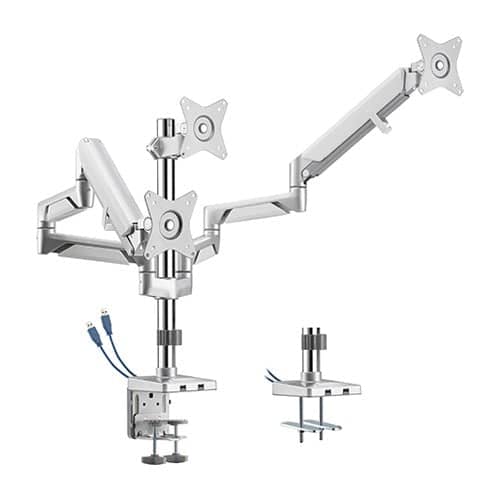 BRATECK Triple Monitors Pole-Mounted Epic Gas Spring Aluminum Monitor Arm with USB Fit Most 17'-27' , Up to 7 kg - Gloss Grey