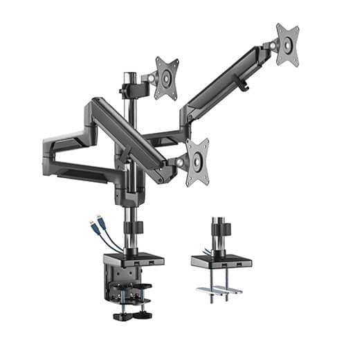 BRATECK Triple Monitors Pole-Mounted Epic Gas Spring Aluminum Monitor Arm with USB Fit Most 17'-27' , Up to 7 kg - Space Grey