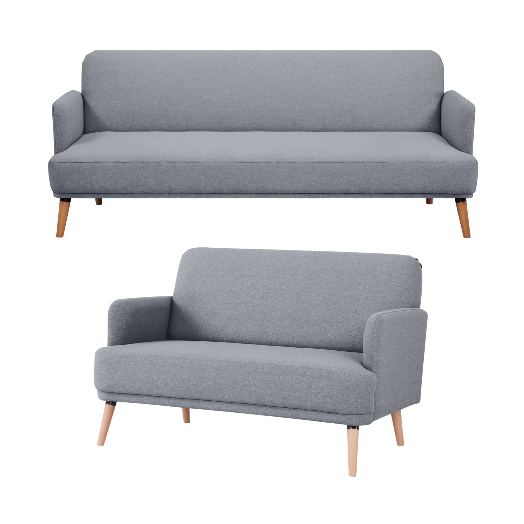 Brianna 3 + 2 Seater Sofa Fabric Uplholstered Lounge Couch - Light Grey