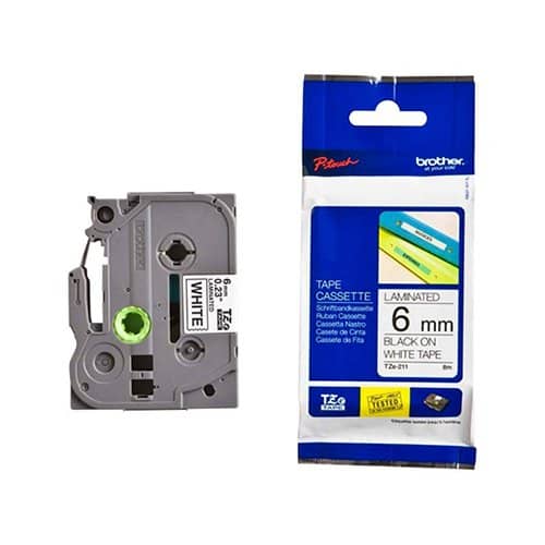 Brother HSe-211 5.8mm x 1.5m Black on White Heat Shrink Tape - for use in Brother Printer