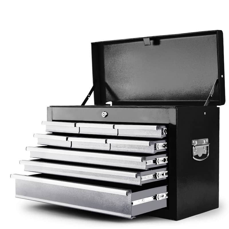 The drawers of the tool chest have varying depths and sizes to accommodate all types of equipment and parts. This compact unit fits discreetly in even the smallest spaces or storage areas. It features a superior tubular cam-lock system for optimal security, making it the ideal storage for valuable and often 'borrowed' items.