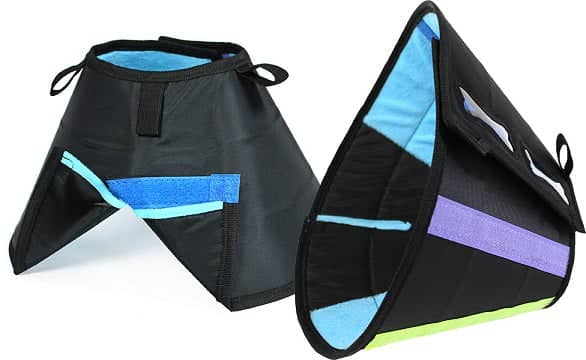 No more struggling to get a sip of water or a bite of food! The heavy-duty outer material is tough enough to repel grime and fur, while the soft and calming colors on the inside provide a cozy and comfortable experience for your pet. And, with multi-colored Velcro pieces and clear-view windows, application is quick and accurate.
