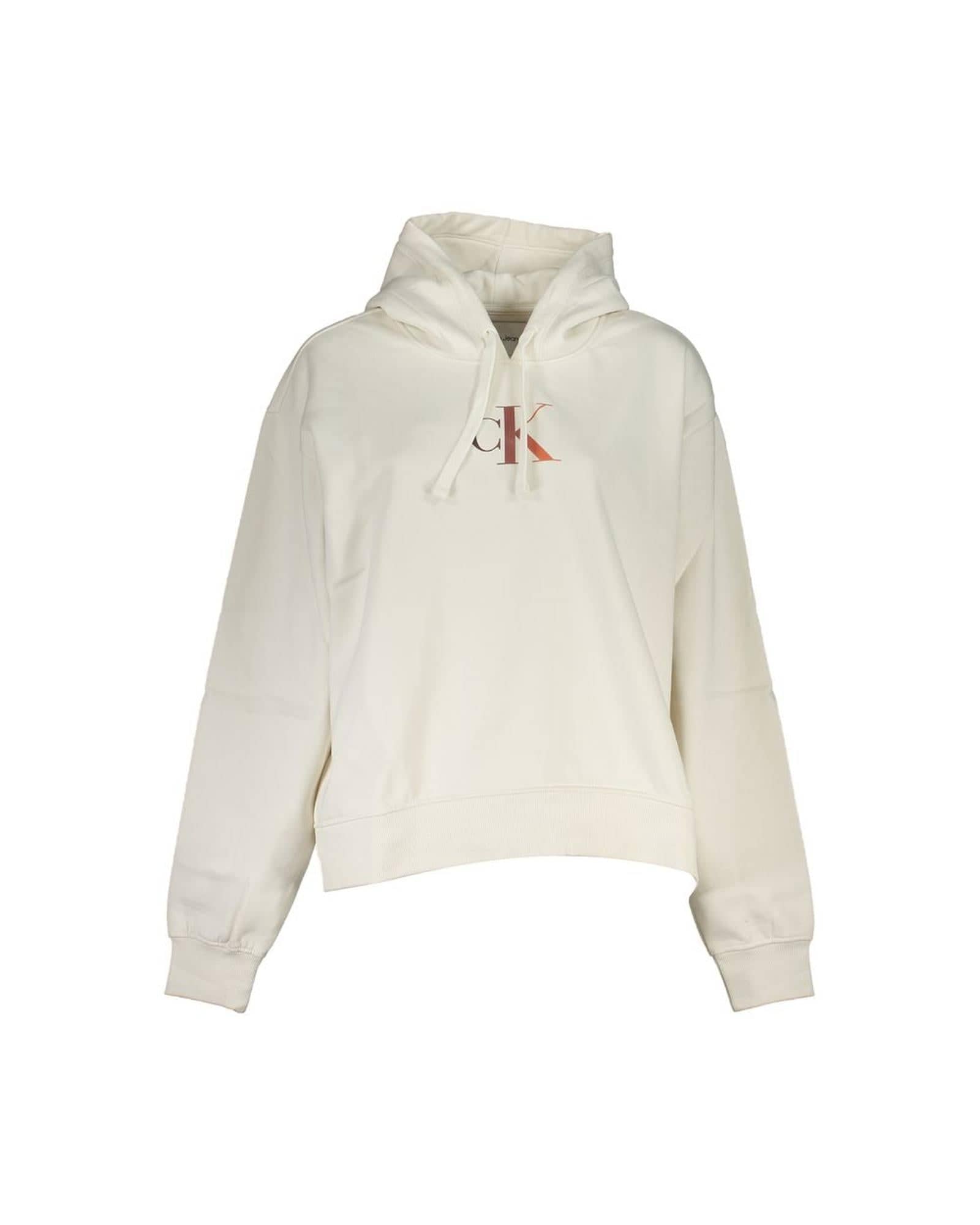 White cotton sweatshirt with hood Long sleeves Fleece fabric for added comfort Stylish print and logo Perfect for women Material: 60% Cotton 40% Polyester