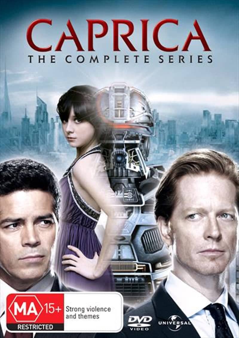 The Battlestar Galactica phenomenon continues with this undeniably compelling look at where the real conflict between humans and the Cylons began. in a vibrant world remarkably like our own: Caprica. Fifty-eight years before Battlestar takes off, two owerful families - the Graystones and the Adamas - find their destinies irrevocably intertwined after a devastating explosion. As both houses struggle with the line where humanity ends and artificial intelligence - the Cylon race - begins, they'll face off in a battlefield of corporate conspiracy, murder, sexual politics and family backbiting. As the series races towards its stunning conclusion, the seeds are sown for the inevitable, brutal clash between the newly-born Cylon race and its human creators. This critically acclaimed seri s is from Executive Producers Ronald D. Moore and David Eick and stars Golden Globe nominee Eric Stoltz and Esai Morales.