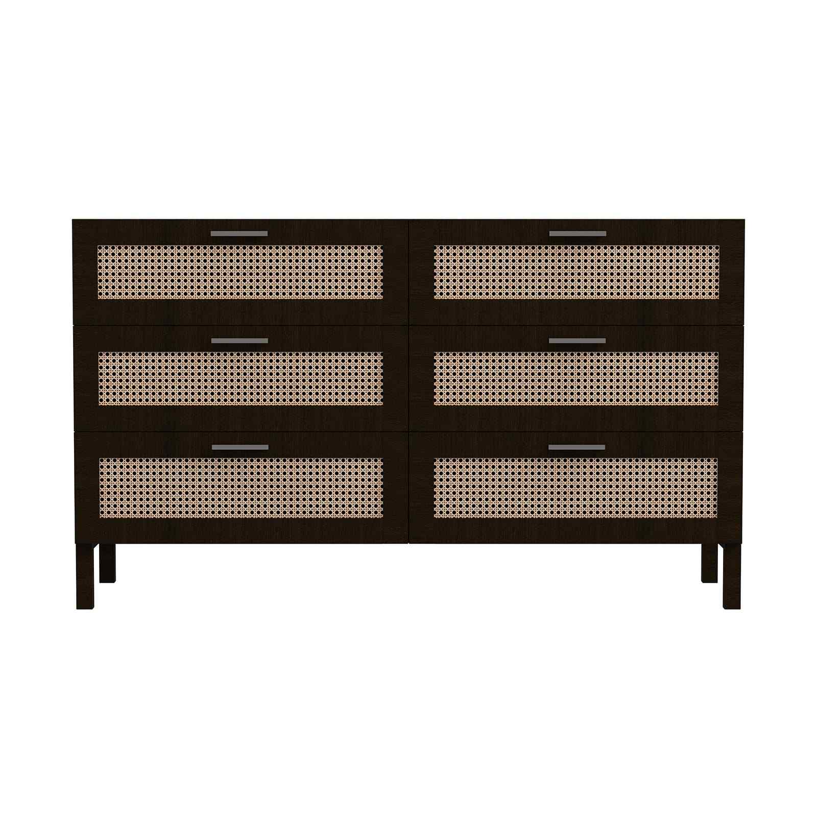 Casa Decor Tulum Rattan 6 Chest of Drawers Cabinet Bedroom Storage Tallboy Black