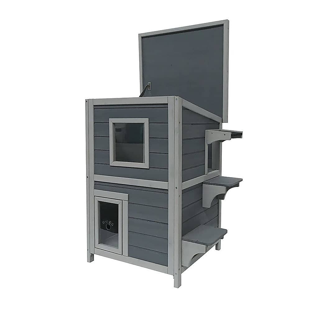 That's not all. If your cat lives outdoors, this indoor-outdoor setup features an asphalt roof to prevent rain from seeping through. With its water-resistant coating, it will hold up to whatever weather conditions nature dishes out. Its grey-and-white colour palette will add a rustic, homey touch to your backyard. And, if you have feral cats in your neighbourhood, give them a safe place to shelter with one of these sturdy cat houses while they provide protection from rodents and other pests to you and your neighbours. Whether you have cats of your own or take care of feral animals, this cat house is a wonderful gift for your four-legged friends. Give your cats the privacy and security they crave with this elegant cat condo. Order your cats' new home today!